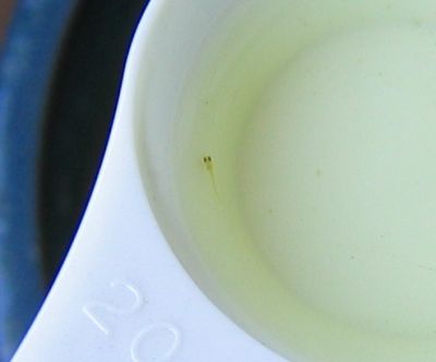 6月の始めに親メダカの水鉢で初めて見つかって以来、