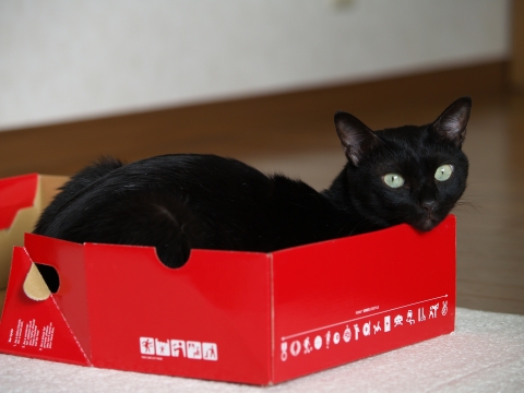 赤い箱に黒い猫。