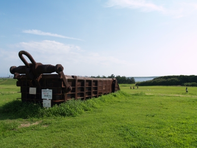 製鉄所で昔使われていた重機がオブジェとして置いてある。